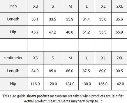 This size guide shows product measurements taken when products are laid flat. Actual product measurements may vary by up to 1".